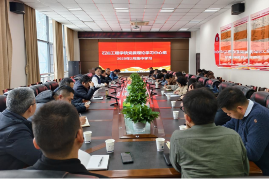 党委理论学习中心组在石油科技大楼B113会议室开展集中学习扩大会,中心组成员、各系(中心、室)主任、副主任、党支部书记参加。