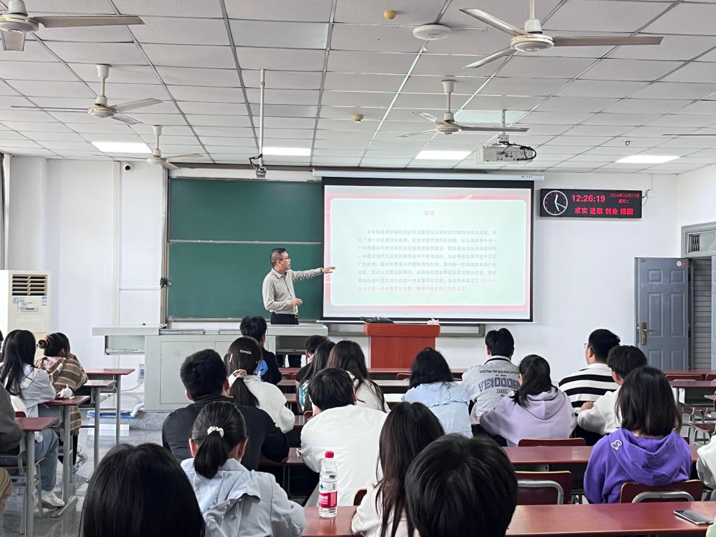 积极响应号召,于 10 月 29 日在武教 B202 开展了第 43 期预备党员培训班重要党课学习活动。此次授课由学院副院长郑双进主讲,主题为《党的二十届三中全会及全国两会精神》,全体新发展预备党员齐聚一堂,接受了一场深刻的思想洗礼与政治教育。