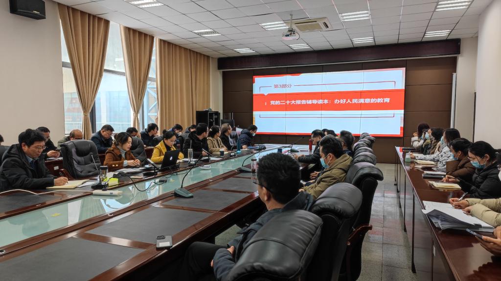 会上,刘娥带领大家集中学习了习近平总书记在学习贯彻党的二十大精神研讨班开班式上的重要讲话、在中央政治局民主生活会上的重要讲话、带领中共中央政治局常委瞻仰延安革命纪念地时的讲话和党的二十大报告辅导读本:办好人民满意的教育等有关讲话和文件精神。刘娥指出,领导干部要以身许党、夙夜在公,以时时放心不下的责任感、积极担当作为的精气神为党和人民履好职、尽好责。要多到基层一线去,多到群众中去,体察实情、解剖麻雀,全面掌握情况,做到心中有数。刘娥强调,作为高等教育工作者,一定要坚守为党育人、为国育才的初心使命,落实立德树人根本任务,紧紧围绕在党的旗帜下,积极响应“以一流党建推动一流学科建设”的号召,为学院事业发展不断作出新的贡献。