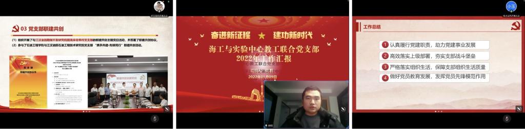 第二批“全国党建工作样板支部”油气田开发工程系教工党支部书记许文俊率先介绍了样板支部创建的主要做法、成效及经验启示。许文俊表示,将充分发挥“样板支部”的“头雁作用”,辐射带动其他党支部共同发展、共同进步。各支部书记就党支部2022年度工作和2023年工作计划分别作了汇报。会议还介绍了学院“全省高校党建工作标杆院系”培育创建工作进展。