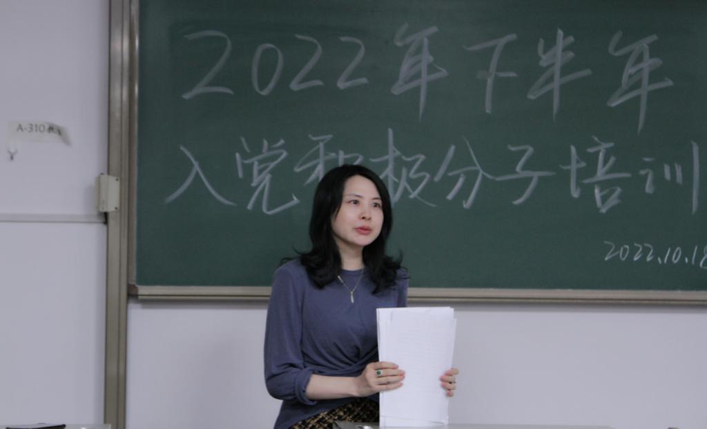 在武教A310开展了入党积极分子培训,院党委副书记刘娥讲授“青春心向党,争做‘党’中人”主题党课,85名入党积极分子参加。