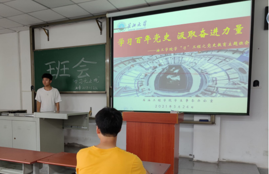 2.加强主题党日活动和政治理论学习的党史学习教育。在主题党日活动中,开展处级党员干部、党支部书记讲党史学习教育专题党课。在师生政治学习中和学生班团会活动中安排党史学习教育内容。邀请荆州市委宣讲团成员姜学勤教授为学院师生作党史学习教育专题报告。