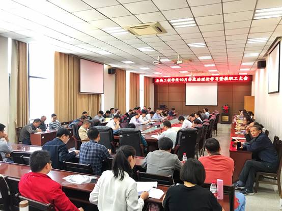 开展10月份政治理论集中学习暨中心组理论学习会,学院中心组全体成员和学院教师集中学习了“弘扬爱国奋斗精神、建功立业新时代”和“不忘初心 牢记使命”专题,会议由党委书记张光明主持。