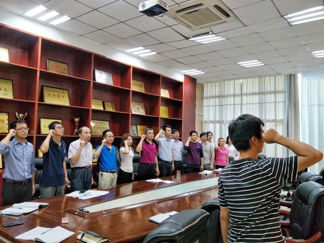 会上,全体党员面对党旗,紧握右拳,庄严重温入党誓词。张光明书记带领中心组成员认真学习了《中央宣传部负责人就〈中国共产党宣传工作条例〉答记者问》,《关于深化新时代学校思想政治理论课改革创新的若干意见》,“直面现实 负重前行”——党委书记朱业宏在中层干部培训研讨会上的讲话,“不忘初心,牢记使命,扎实推进“双一流”建设”——校长冯征在2019年暑期工作研讨会上的讲话,《91网