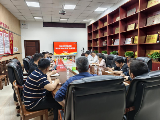 党委理论学习中心组在石油科技大楼C111会议室开展集中学习扩大会,中心组成员、各系(中心、室)主任、研究所所长以线上线下结合方式参会。