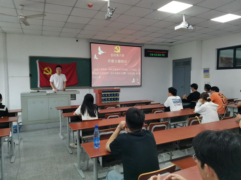 会议伊始,吴坤同志带领大家重温入党誓词,并交纳本月党费;随后,林中天同志和兰天福同志带领全体党员集体诵读学习《中国共产党章程》总纲;党员讲党课环节,吴军龙同志带领大家共同学习中国共产党“六大纪律”,帮助党员同志不断增强自我净化、自我完善、自我革新、自我提高的能力,明确要始终把纪律和规矩摆在首位。主题研讨环节,兰天福同志表示“作为一名学生党员,我们要加强思想学习,纪律严明是党的光荣传统和独特优势,正是靠着严明的纪律和规矩,中国共产党才能不断取得革命、建设和改革事业的伟大胜利。要坚持个人自学与集中学习相结合,紧扣党的政治纪律、组织纪律、廉洁纪律、群众纪律、工作纪律、生活纪律进行研讨,不断强化纪律意识。”