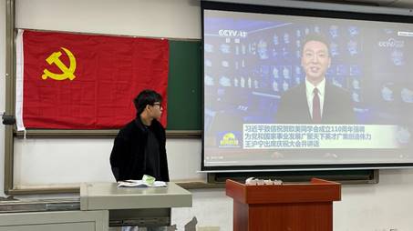 研究生第一党支部于武教A-108召开11月支部主题党日活动。本次会议由汪帮哲同志主持,支部书记韩清越及支部党员同志参会。