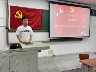会议伊始,陈金建同志带领全体党员重温入党誓词。随后,全体党员集体诵读学习《党章》第五章相关内容。集中学习贯彻习近平新时代中国特色社会主义思想主题教育等材料后,全体党员针对“作为一名学生党员,谈谈对开展主题教育学习的认识?”进行研讨。罗光杰同志表示近日来,通过支部组织的群众路线教育实践活动和自己对群众路线教育实践活动学习读本的学习,我对群众路线有了更深刻的理解:党的群众路线就是“一切为了群众,一切依靠群众,从群众来到群众中去”。