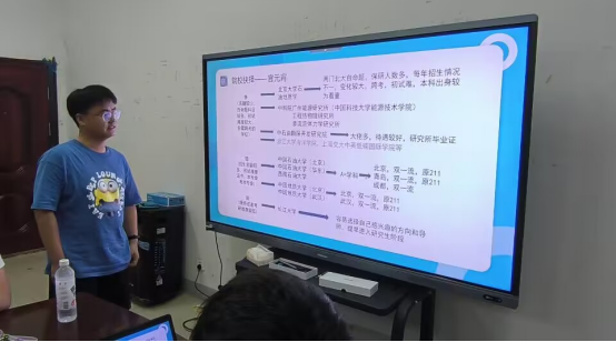 在院校抉择方面,李茂竹学长给大家传授了几点建议:大家可以从研招网查看考研院校相关信息,从学校官网了解心仪学校的夏令营举办情况并积极参加。获取心仪学校学长学姐的微信,与学长学姐进行交流,对老师有初步的了解,去学校官方网站搜一下老师,再搜一下老师近几年的论文,提前对老师的研究方向有一定的了解。官元宵学长给同学们列举了三类不同难度梯度的考研院校,分别归类为“冲、稳、保”建议同学们根据自身实际情况选择适合自己的目标院校。