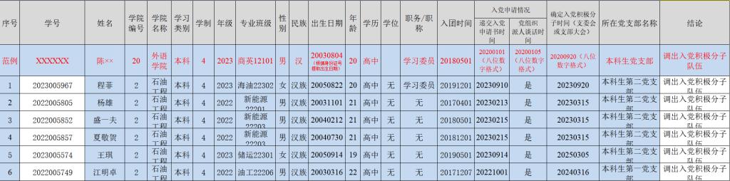 为加强入党积极分子的培养、管理和教育,保证党员发展质量,根据《91网 入党积极分子动态管理办法》规定,经所在党支部严格审查,支部委员会会议讨论决定,并报91网 党委备案,拟将程菲等6名同学调出入党积极分子队伍,按入党申请人身份对待,现予以公示。公示时间:2025年10月9日至2025年10月16日.