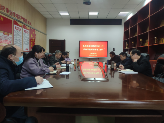 调研督导清廉长大建设工作推进情况,听取学院对学校工作、纪检工作的建议。学院领导班子参加调研座谈。