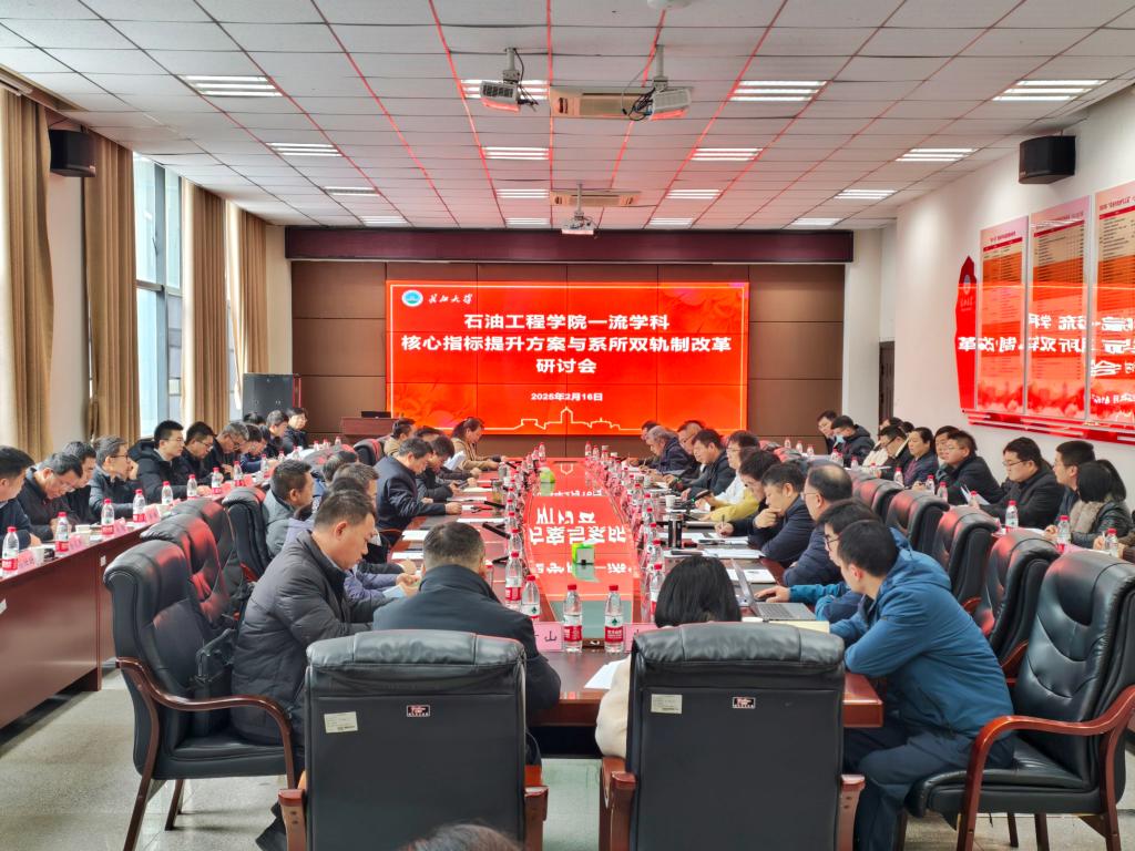在石油科技大楼B113召开一流学科核心指标提升与系所双轨制改革研讨会,全面剖析石油与天然气工程学科建设核心指标进展情况,锚定学院高质量发展目标,凝心聚力,共谋举措。校党委常委、副校长江厚顺出席会议。