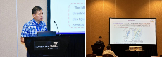 朱忠喜教授在S7分会场Experimental Studies and Computer Modeling of Natural Gas Production from Marine Gas Hydrate Deposits作了“Lost Circulation Detection Method Based on Signal Characterization”主题报告,介绍了通过井下测量数据及特征信号监测油气井漏失复杂工况的新方法与技术。何淼副教授在S2分会场 Hydraulic Fracturing Problems: Theory, Numerical Simulation, and Experiments作了“Genesis Mechanism and Prediction Method of Ultra-Deep Pressure Abrupt Change in the East China Sea” 主题报告,深入探讨了东海地区深井超深井压力突变的成因机制及预测新方法。