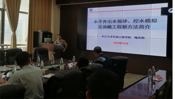 喻高明教授进行了《水平井出水规律、控水模拟及油藏工程新方法简介》的技术研讨,喻教授以物模实验和数值模拟技术相结合,开展针对底水油藏油水流动规律研究,提出了油藏工程新方法——时变产量精细劈分技术,具有广阔的应用价值。