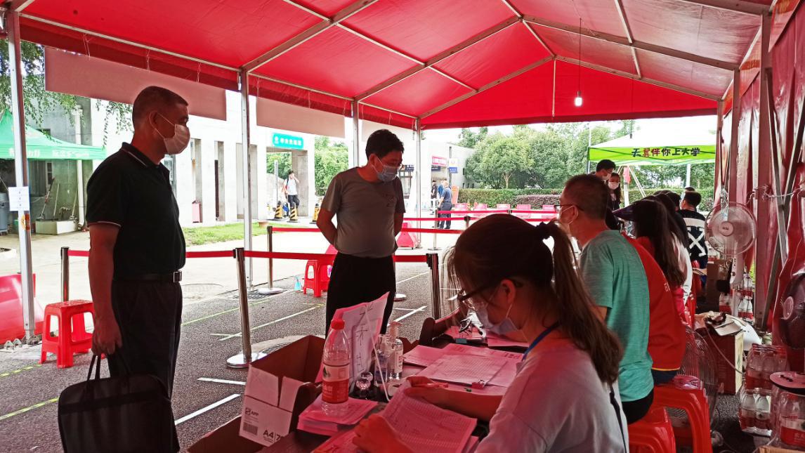 返校的油油们需要通过行李消杀,更换口罩、学院报到,核实信息、医疗保障,核酸检测、门禁测温,进入宿舍等流程,才可以入住公寓。油油们在志愿者和辅导员的引导下,这一切都显得井然有序,有条不紊。油油们在学院报到点还领取返校健康大礼包一个,内容丰富:口罩、餐券、温度计、核酸免费检测卡、手套、免洗洗手液、风油精等,应有尽有。“老师们真是体贴,周到,连夏季防蚊虫叮咬必备神器风油精都有,暖心的不要不要的......”返校毕业生郑春玲从辅导员史永波老师手里接过健康包时激动地说道。