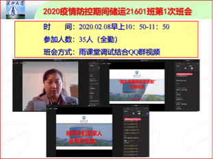 通过线上主题班会,同学们都纷纷表示一定以主人翁的姿态积极主动、务实有效地参与到疫情防控中,准确、及时提供个人相关信息,不漏报、不瞒报,协助学院做好每日数据统计与上报等相关工作。疫情防控,人人有责,面对这场突如其来的疫情,我们相信在学校党委的正确领导下,在各位老师的辛勤努力下,在同学们的积极参与下,一定能够打赢这场防疫阻击战。
