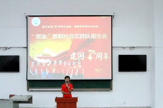 一百个读者心中有一百个哈姆雷特,同样的,每个实践队员都有他们不同的见解和看法。实践队员刘洋、王果、陈舒、黄盟也纷纷上台,分享他们的感受和看法。队员刘洋讲到他被新疆油田的高深科技所震撼,SAGD采油技术让所有石油人人感到自豪;队员王果则谈到我们当今的幸福生活来之不易,正因有老一辈的石油人为我们架桥铺路,我们才有今天的安逸美满,我们理应肩负使命,不懈奋斗;队员陈舒更是结合自身经历,她讲到她曾经的迷茫,对石油行业不看好,还曾一度想过转专业,但经过克拉玛依之行,她内心的顾虑彻底消除,下定决心在石油行业踏踏实实地走下去。学长学姐们精彩的讲述赢得了台下新生一片片热烈的掌声,人人都感到有所收获。最后,全体同学高唱91网