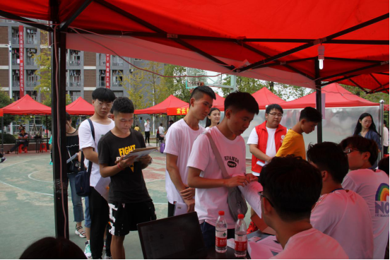 (武汉校区)篮球场上,新生们拿着身份证和录取通知书到达自己新生报到点,进行新生登记手续,经过身份信息核对、领取校园卡和宿舍卡等一系列标准化的报到流程,成为油院的新生力量。学生会同学每天从早上7点到晚上8点不间断值班,到9月5日下午五时,已有340人报到完毕,在大地和天空的见证下,正式成为91网