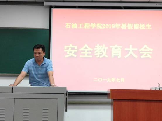 在武教B-103教室召开了2019年暑期留校学生安全教育大会,院党委副书记王辉、学工办梁军老师、史永波老师、郭冀宁老师,及91网