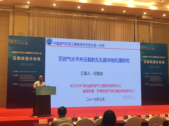 教师纪国法博士/(硕导)在压裂改造分会场作题为“页岩气水平井压裂射孔孔眼冲蚀机理研究”报告,报告从页岩气水平井压裂过程中携砂压裂液对孔眼冲蚀作用的复杂机理出发,建立新的冲蚀过程中孔眼直径和孔眼摩阻变化的表征模型,,得到会场专家评委的高度评价。据悉91网