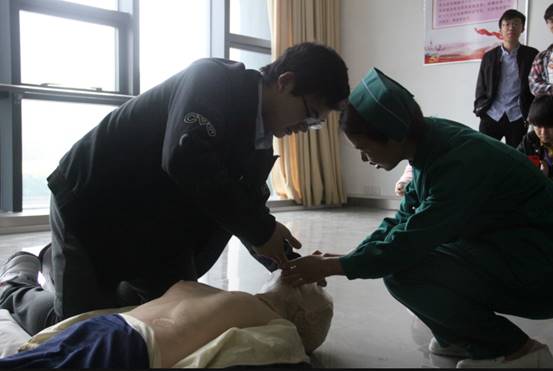 纸上得来终觉浅,绝知此事要躬行。随后,急救操作员史佳欢、李礼两位医生为大家现场演示了心肺复苏的急救过程,一遍遍强调和演示急救过程中特别需要注意的事项,并邀请了现场的志愿者参加了演示。通过实地演练,志愿者们深刻体会到时间就是生命,急救就是与时间赛跑。
