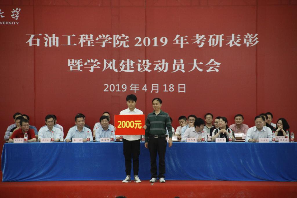 等18所学校或科研院所录取,其中石油之光21501班录取率为62%,华林公寓2#220和校内女寝4#547两个寝室更是取得“全员高中”的好成绩。随后,10位考研优秀学生代表和15位考研先进集体学生代表依次上台接受表彰并与颁奖领导合影留念。考研优秀学生代表、石油之光21501班朱清源(384分考取中国石油大学(北京))和储运21503班李伯英(354分考取91网
