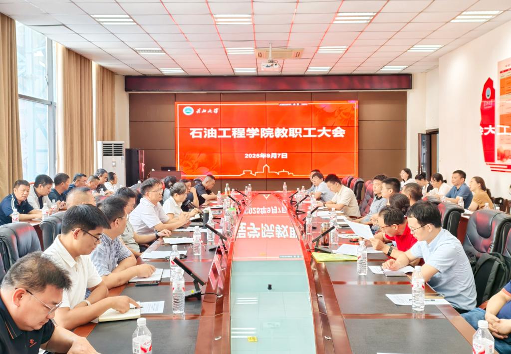 在石油科技大楼B113会议室召开全体教职工大会,规划部署学院机构与机制改革重点任务,并收听收看学校庆祝第41个教师节暨新学期工作部署会。会议由学院党委书记张伟主持,全体教职工参会。