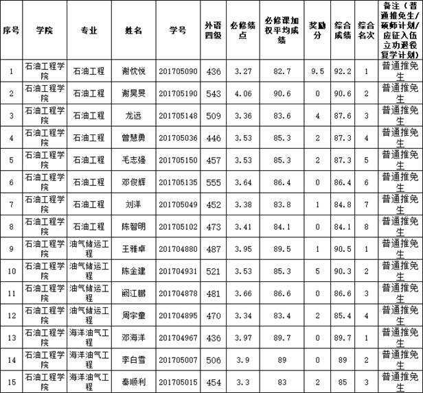 按照《91网 推荐优秀应届本科毕业生免试攻读硕士学位研究生管理办法(试行)》(长大校发 〔2020〕106号)、《教育部办公厅关于进一步做好高校学生参军入伍工作的通知》(教学厅〔2015〕3号)和《91网 创新人才培育计划实施办法》(长大校发〔2019〕129号)等文件精神,按照教务处确定的推免计划数,结合学院实际,经学生个人申报,学院及学校相关单位审核,综合必修课加权平均成绩和奖励加分,经91网 遴选工作领导小组会议讨论审核,现对拟推荐结果公示如下: