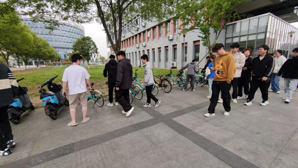 14时,550名志愿者准时集合在学校足球场。随后志愿者们迅速前往不同责任区。一部分志愿者前往食堂门口,另一部分志愿者前往教学楼前的停车区域在黑油志愿者支队成员的简要分工后,迅速投入到工作中。有的同学负责将倒下的自行车扶起,有的同学则负责将自行车按照规定的方向整齐排列。尽管天气不佳,但志愿者们的热情非常高涨,很快,原本杂乱无章的自行车停放区就变得井然有序。在他们的努力下,食堂门口的环境逐渐恢复了原有的清新与整洁。尽管天气不好,但同学们的积极性却丝毫未减,志愿者们相互鼓励,共同协作,不仅完成了任务,还在劳动中提高了集体归属感,锻炼了团队协作能力。