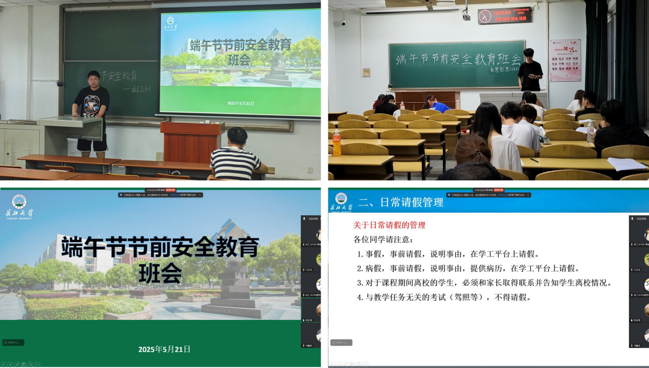 组织全体本科生和研究生召开端午节节前主题班会活动,本次班会旨在向同学们强调各方面的安全注意事项,预防各类安全事故的发生。