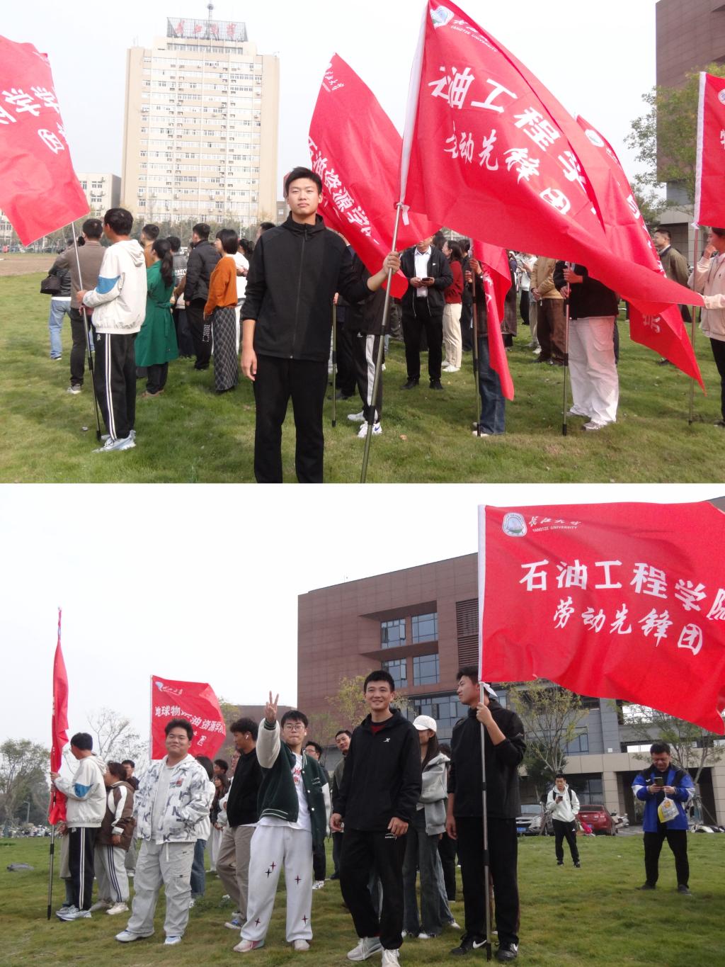随后,师生们积极投入到基地的首次劳动实践中。大家佩戴手套,手持锄头,俯身弯腰,认真清理散落在地的石块与砖块。尽管地块面积广阔、任务繁重,但同学们热情高涨,干劲十足。现场气氛热烈而有序,大家分工明确、配合默契,充分展现了石油学子团结协作、吃苦耐劳的优良品质和积极向上的精神风貌。