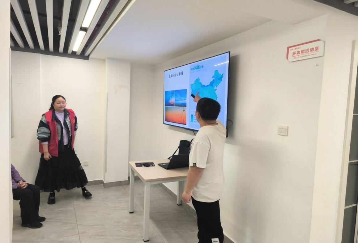 黑油能源科普宣讲队的队员前往罗家山社区开展能源科普宣讲活动。主讲人李富淼以身边的新能源为切入点,结合老年人日常场景,用通俗语言介绍光能(太阳能热水器、光伏路灯)、风能(小型风力发电原理)、水能(水力发电与家庭节水)的应用价值,然后结合国家基建,向老人们介绍我国在新能源领域建设的诸多成就和宏伟蓝图,最后以发展新能源的意义作结,引发了老人们的深深共鸣,青年智慧与银发经验碰撞,科技之力与人文关怀交融,这场“青绿对话”为社区可持续发展注入新活力。