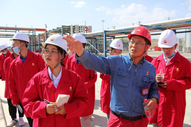 从历史的长河中娓娓道来,石油的故事经过了漫长的发展才有了今天的石油时代。我们在讲解员的带领下参观石油历史博物馆,那一张影像,一个物件,一块石头,无不映射出石油的历史痕迹。令我印象最为深刻的是那摆放整齐地一排排的油芯。在那小小的油芯背后,是塔里木石油人夜以继日的辛苦劳作,是塔里木石油人不辞辛苦绘制着一张张刨面图,是塔里木石油人对石油深沉而热烈的热爱。“只有荒凉的沙漠,没有荒凉的的人生。”进入塔里木油田时,引入眼帘的就是这几个大字,五天的旅程结束后,离开塔里木,视野的最后依旧是它们。只不过比当时多了一份敬佩,多了一份感动。那种敬佩和感动揉进了骨子里,让我对身着红色工作装的人都有一种“天然滤镜”,一直觉得他们是最可爱的人。与石油工作者接触交流的五天里,我更被他们身上的“家国情怀”所感动,为了更快的实现我国石油战略目标,加快完善石油战略储备制度,基地中的许多人一年里回家的次数屈指可数。他们“一家不圆万家圆”的奉献令我和同伴们感动了许久。担当诠释忠诚,用实干诠释尽责,用有为诠释履职,用友善诠释正气。