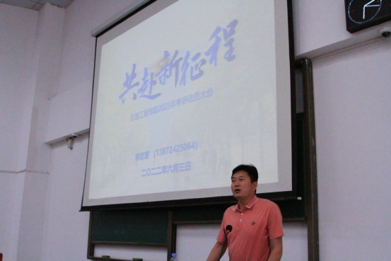 大会伊始,副院长李忠慧教授对参加本次动员大会的同学及老师表示热烈欢迎,并做《共赴新征程》主题汇报,从行业人才需求、学院研究生教育发展史、研究生培养模式、奖助体系以及报考本院研究生优势等方面做详细介绍。他强调石油是非常重要的战略资源,鼓励大家继续深造,为祖国发展贡献力量。同时学院有能力、有平台、有信心培养高质量的研究生,欢迎本校学生积极报考91网