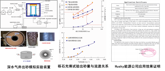 首次提出了海上油田全寿命开采周期高效防砂优化方法,克服了国外防砂方法未考虑黏土水化堵塞机理的缺陷,揭示了防砂中黏土水化堵塞与微颗粒冲蚀耦合机理,形成了海上油气井防砂设计企业标准,出砂浓度控制在0.05%以内,相比传统设计方法采液强度提高30%,解决了我国海上油田防砂与产能的矛盾,在我国海上四大海域起到了极好的应用效果。